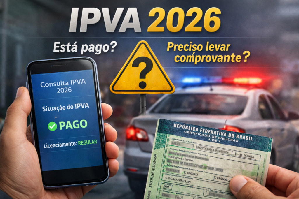 Neste guia completo, você vai entender onde consultar o IPVA 2026, como comprovar o pagamento e o que a lei realmente exige.